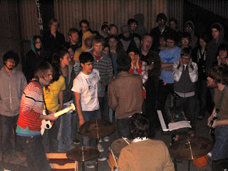 Last night, in the sub-zero temperatures of the Holland space, an incredible show was had–The Frontmen got the blood circulating back into our hands and feet with a set that made you want to move; Portland’s own Ferocious Eagle played a delirious (they had driven all day and the previous night from Salt Lake City) and explosive set to old and new fans alike and told us wonderful stories along the way (including one that makes me want to meet the singer’s mom–she bought the boys bars of soap to wash their mouths out after witnessing their tour kick-off show); and the highly entertaining, high energy set of Short Hair. They demanded the huddled masses get on stage with them, and we all promptly and gladly joined them. Some photos below, and more, as always, on Flickr–click HERE.