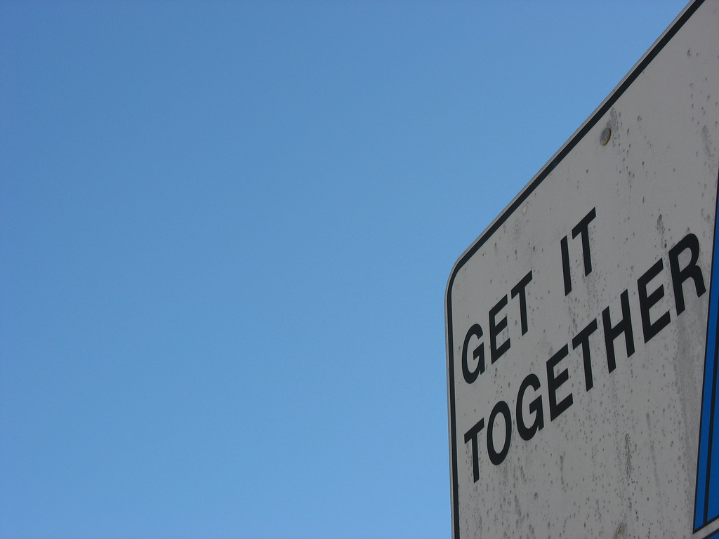 Like this photo-taker when he stumbled upon this excellent photo op, I too was in dire need of this sign this morning–especially after spilling my coffee and getting pulled over by the police for a breaklight that’s out and mismatching license plates. Sheesh, get it together indeed. Thanks to the wonderous Paveovertahoe for this image and for helping me get back on track!